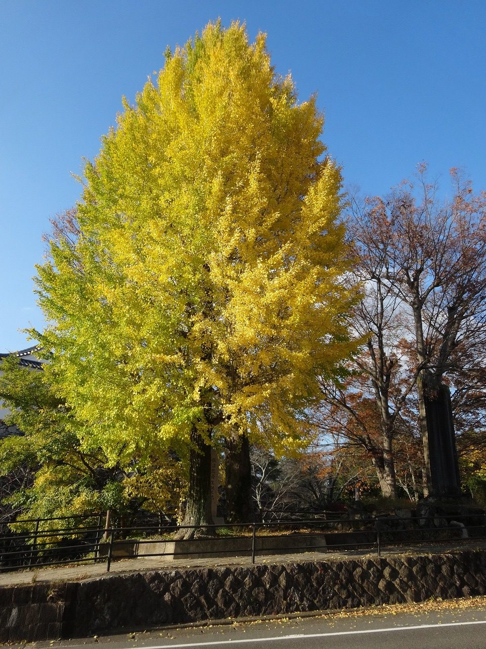 宗英寺のイチョウが見頃になりました。(2021.12.5) 宗英寺のイチョウの黄葉は見頃を迎え、モミジの紅葉と鮮やさで共演しています。 県内最大級のイチョウの木で、樹高約37m、枝張り東西約14m、幹回約8mと推定されています。 クリックすると地図が表示します。 公開済み: 2021年12月5日更新: 2021年12月5日作成者: kameyamaカテゴリー: ブログ, 亀山宿