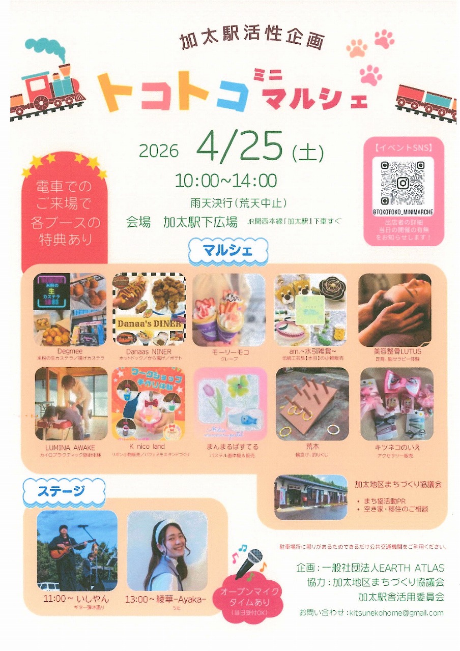 JR加太駅で4月25日(土)トコトコミニマルシェを開催します。