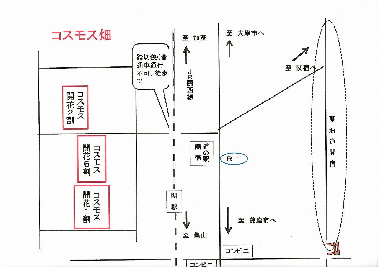 JR関駅南側コスモスの開花状況(2025.10.15) 公開済み: 2025年10月15日更新: 2025年10月15日作成者: kameyamaカテゴリー: ブログ, 関宿 JR関駅南側コスモス畑は1haですが、一部(30a)では6割が開花して、ヒマワリとコラボしています。 なお、見学される場合は農作業に支障ないようにお願いします。 関連記事 05 日本の童謡・唱歌(1月のうた) JR関駅ふるさと会館1階(亀山市観光協会売店)で、『日本の童謡・唱歌(1月のうた)』を掲示しています。 また、会場では絵手紙や正月の置物が展示していますのでご覧ください。 公開済み: 2025年1月5日更新: 2025年1月5日作成者: kameyamaカテゴリー: ブログ, 関宿 亀山市内の紅葉が始まりました。(2024.11.13) 亀山市内の亀山公園、正法寺山荘跡、法安寺の紅葉が始まりました。 【亀山公園】 【正法寺山荘跡】 【法安寺】 公開済み: 2024年11月13日更新: 2024年11月13日作成者: kameyamaカテゴリー: ブログ, 亀山宿, 坂下宿・鈴鹿峠, 季節, 関宿 01 日本の童謡・唱歌(10月のうた) JR関駅ふるさと会館1階(亀山市観光協会売店)で、『日本の童謡・唱歌(10月のうた)』を掲示しています。 また、会場では絵手紙や置物が展示していますのでご覧ください。 公開済み: 2024年10月1日更新: 2024年10月1日作成者: kameyamaカテゴリー: ブログ, 関宿 この投稿へのトラックバック トラックバックはありません。 トラックバック URL
