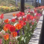 亀山市内の道路沿い花壇に芝桜、チューリップ等が咲いています。(2026.4.8)