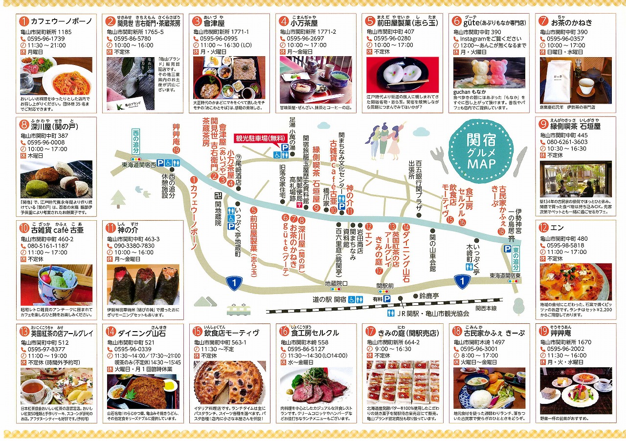 関宿グルメMAPができました。 公開済み: 2026年2月5日更新: 2026年2月5日作成者: kameyamaカテゴリー: お知らせ, 関宿 観光パンフレット・MAPダウンロード 関連記事 16 東海道関宿街道まつりが11月3日(日)に行われます。 第37回東海道関宿街道まつりが11月3日(日)に行われます。関宿は国の重要伝統的建造物群保存地区に昭和59年に選定されました。 公開済み: 2024年10月16日更新: 2024年10月16日作成者: kameyamaカテゴリー: お知らせ, 関宿 関宿で「絵手紙展示会 昭和の思い出」が6月24日(火)から開催します。 公開済み: 2025年6月24日更新: 2025年6月24日作成者: kameyamaカテゴリー: お知らせ, 関宿 18 関宿重要伝統的建造物群保存地区選定40周年記念シンポジウムが11月2日(土)に開催されます。 昭和59年12月に国の重要伝統的建造物群保存地区に選定され、本年12月に40周年を迎えます。 公開済み: 2024年10月18日更新: 2024年10月18日作成者: kameyamaカテゴリー: お知らせ, 関宿 この投稿へのトラックバック トラックバックはありません。 トラックバック URL